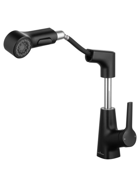 Смеситель для раковины с выдвижным изливом WONZON & WOGHAND, Черный матовый (WW-121B108-M... Подробнее