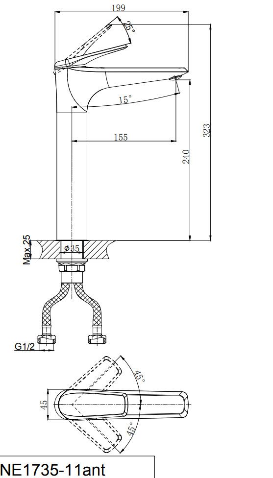 Смеситель для раковины RUSH арт. NE1735-11brоnze с металлической ручкой из коллекции Nevis изготовлен из высококачественной латуни и имеет рычажное управление. В смеситель установлен картридж D-35 с керамическими пластинами. Высота смесителя 323 мм. Излив литой неповоротный 199 мм. Высота излива до аэратора 240 мм. Аэратор изготовлен из пластика с нержавеющим корпусом, угол наклона - 15 гр. В комплекте универсальная присоединительная группа для установки на горизонтальную поверхность, гибкая подводка с латунными гайками 40 см - 2шт, фум-лента, индивидуальный пакет, паспорт, гарантийный талон.