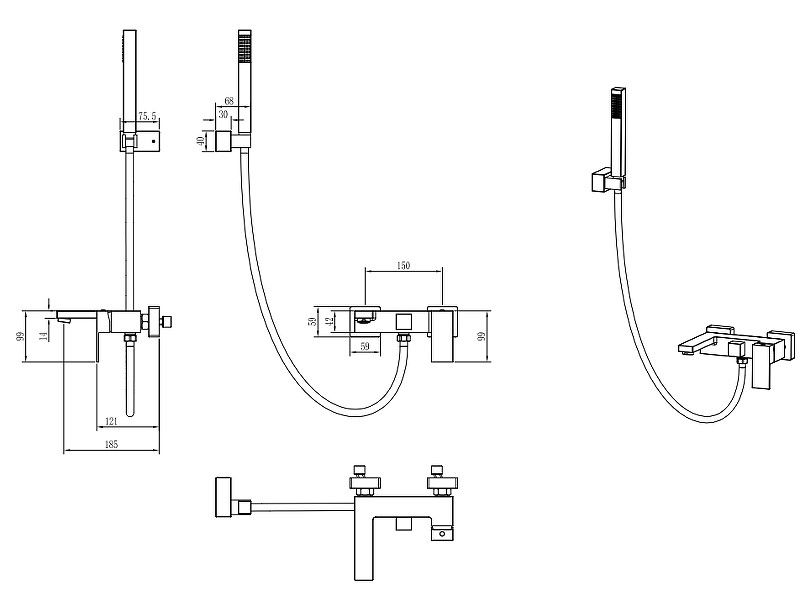 Смеситель для ванны Boheme Qubic 473-SGM с душевым гарнитуром.Характеристики:Цвет: антрацит глянец.