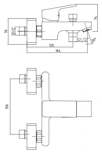 Смеситель для ванны E.C.A. Tiera 103502469EX чёрный/хром