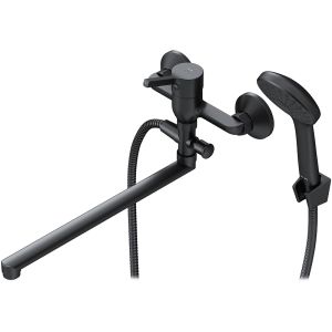 Смеситель для ванны и душа Am.Pm X-Joy F85B90122 универсальный Черный матовыйСтильное универсальное решение для ванной комнаты - качественный смеситель для ванны и душа с длинным поворотным изливом с душевым набором. Универсальный длинный излив позволяет использовать смеситель как для ванны, так и для рядом стоящей раковины. Функциональный держатель для ручного душа на два положения добавит удобства использования. Душевой шланг длиной 150 см позволит наслаждаться душем даже высокому человеку. Максимум функций за разумную плату в одном изделии. Ультрамодный дизайн ручки придает смесителю дополнительную динамику и дарит непревзойденную легкость управления. Вы почувствуете это с первого прикосновения. Точная инженерия для Вашего комфорта: благодаря обширной зоне движения ручки управлять температурой воды стало еще проще.