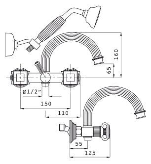 Смеситель для ванны и душа Cezares APHRODITE-V-02-S1