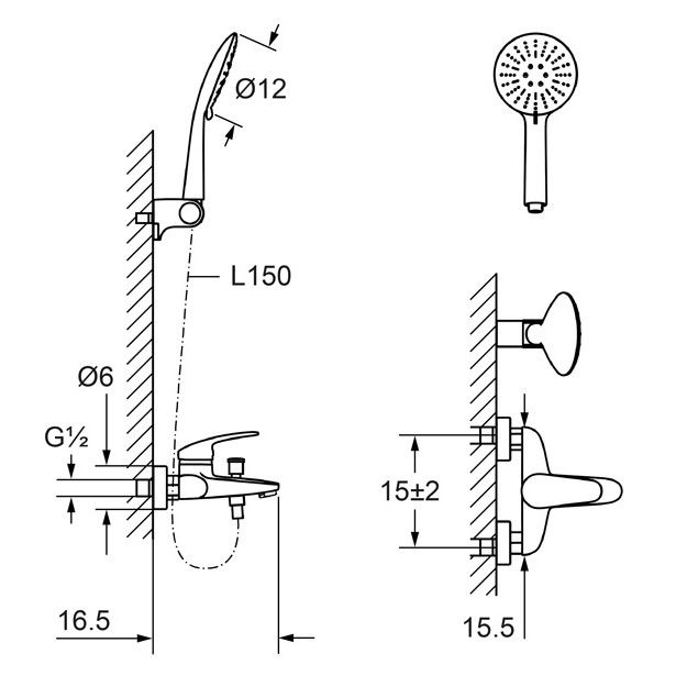 Комплектация - ручной душ, излив для набора воды, верхний душ