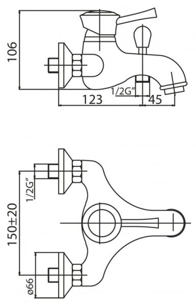 Смеситель для ванны и душа однорычажный, бронза Cezares GIUBILEO-VM-02