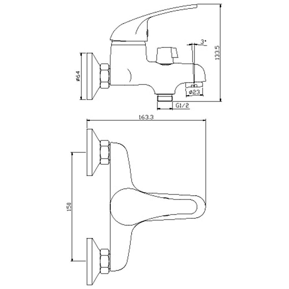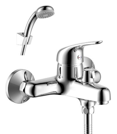 Смеситель Rossinka Y40-30 для ванны с коротким изливом. Диаметр картриджа 40 мм. Аксессуары в комплекте (шланг 1,5 м, настенное крепление, 1-функциональная лейка с функцией легкой очистки).
