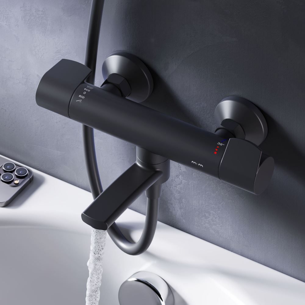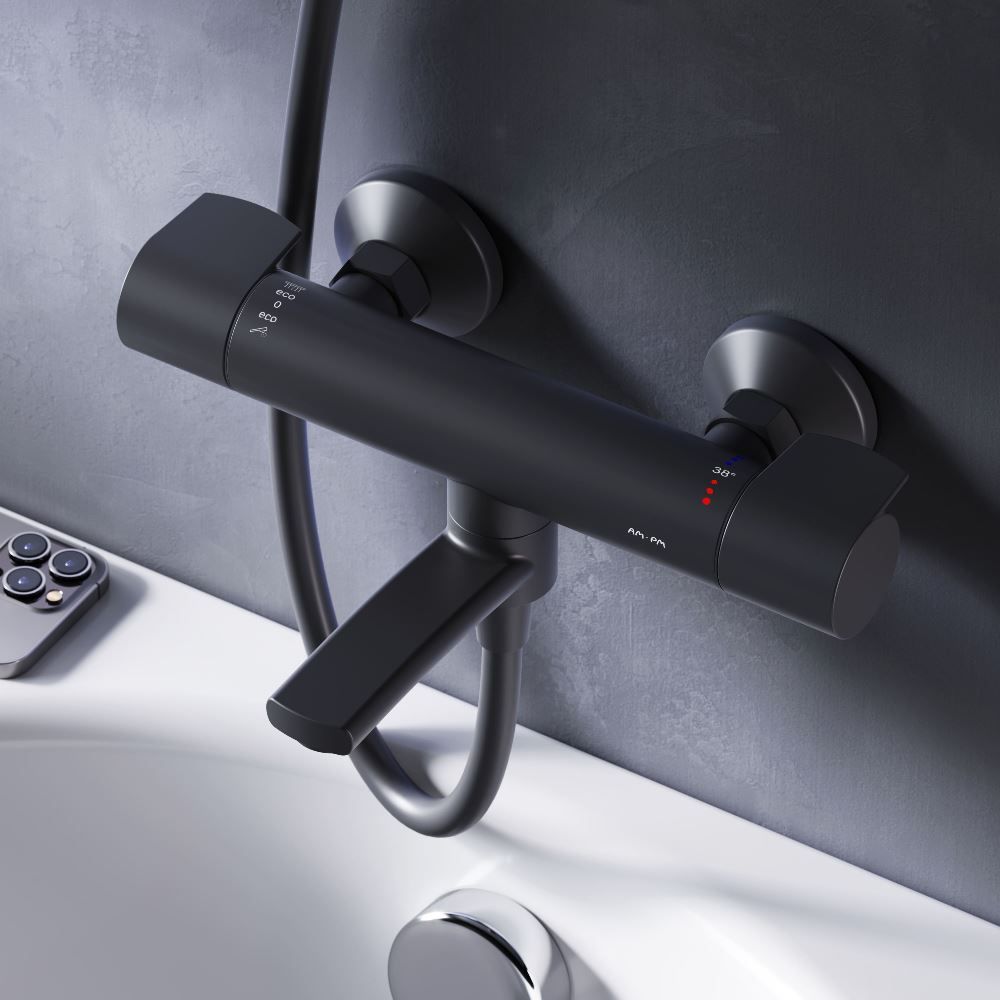 Смеситель для ванны и душа с термостатом Am.Pm X-Joy F85A50022 чёрный купить