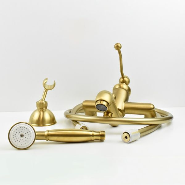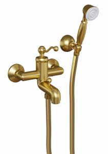 Коллекция DUOMO фабрики PAINI с более чем 60-ти летней историей смогла впитать в себя всё самое лучшее от плавных и уютных линий дизайна давних времен до современных технически сложных механизмов внутри.Однорычажный смеситель для ванны сочетает в себе винтажный стиль с современной начинкой и функциональностью. Затейливая форма рычага контрастирует с массивным корпусом, а золотой цвет покрытия играет бликами, визуально расширяя пространство. В комплект входит лейка для душа, шланг и держатель для лейки. Антикварные формы DUOMO будут органично смотреться в стилях классика, винтаж или по-новому раскроют интерьер в стиле фьюжн.