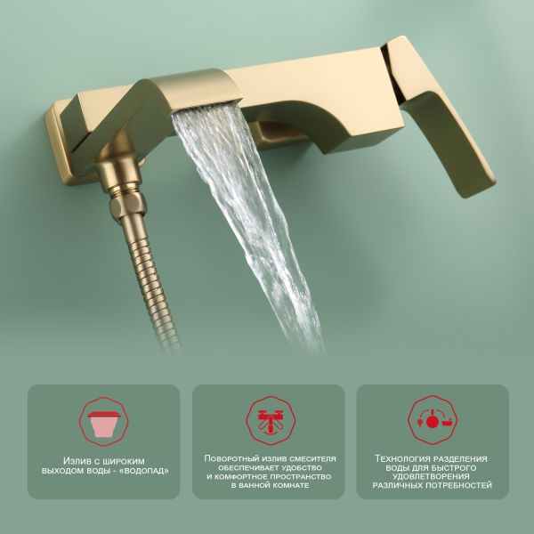 Смеситель для ванны Raglo R02.30.03 золотой сатин