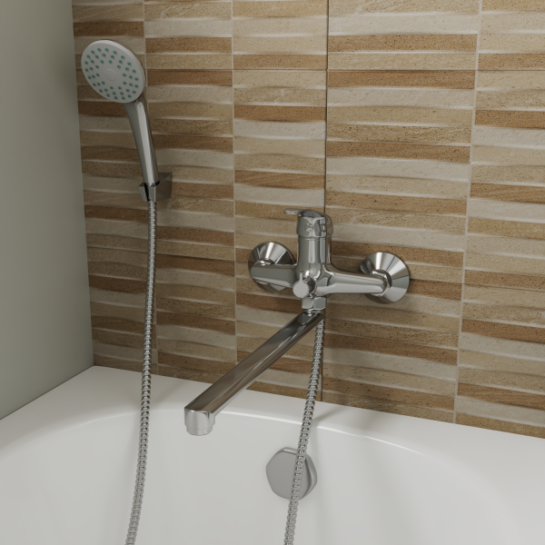 Смеситель для ванны RUSH арт.VR7114-51 с поворотным изливом из коллекции Vrangel изготовлен из высококачественной латуни и имеет рычажное управление. Излив изготовлен из нержавеющей стали В смеситель установлен картридж D-40 с керамическими пластинами, а также дивертор с керамическими пластинами. Пластиковый аэратор с нержавеющим корпусом. Излив поворотный 414мм. В комплекте универсальная присоединительная группа для установки на вертикальную поверхность, однорежимная душевая лейка и душевой шланг длиной 1,5м., держатель душевой лейки, эксцентрики, индивидуальный пакет, паспорт, гарантийный талон.