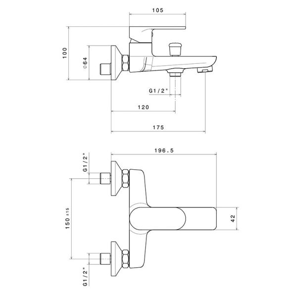 69340KM.21.018 Смеситель для ванны PIANO настенный без лейки, хром глянец