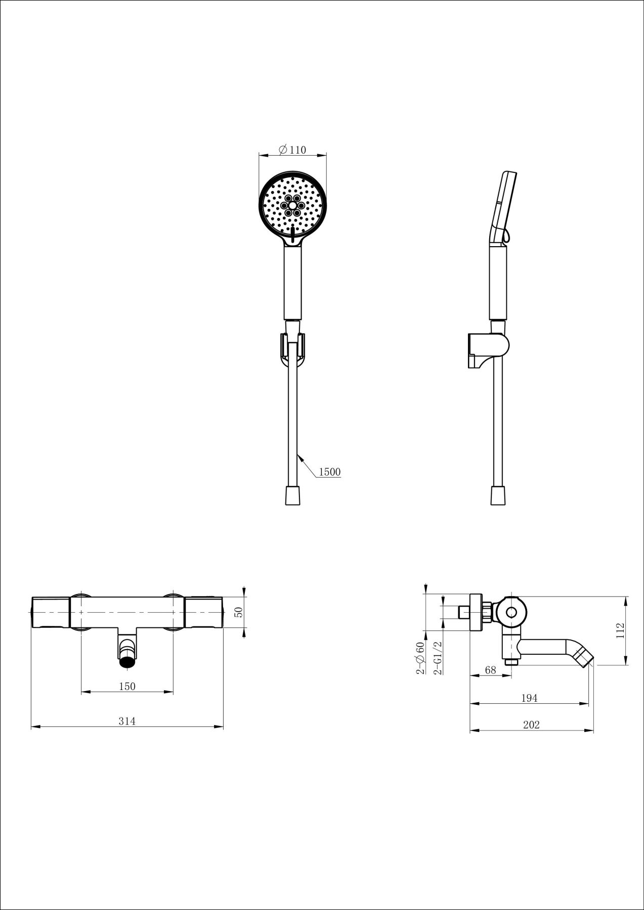 Смеситель для ванны с душем Wonzon & Woghand WW-A2006-A1-BG с термостатом брашированное золото купить