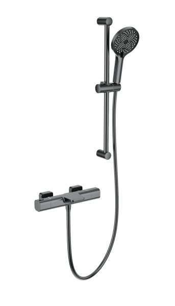 Смеситель для ванны с душевым гарнитуром и термостатом WONZON & WOGHAND Plate, Темный графит (WW-C2017-A-BGG)
