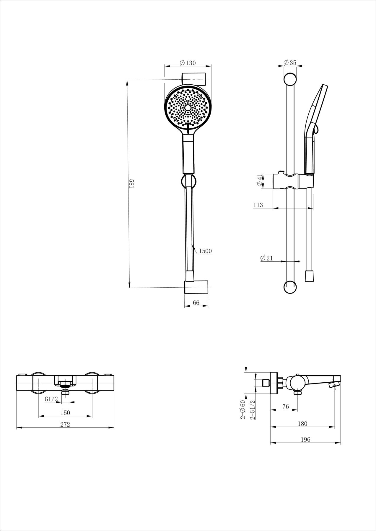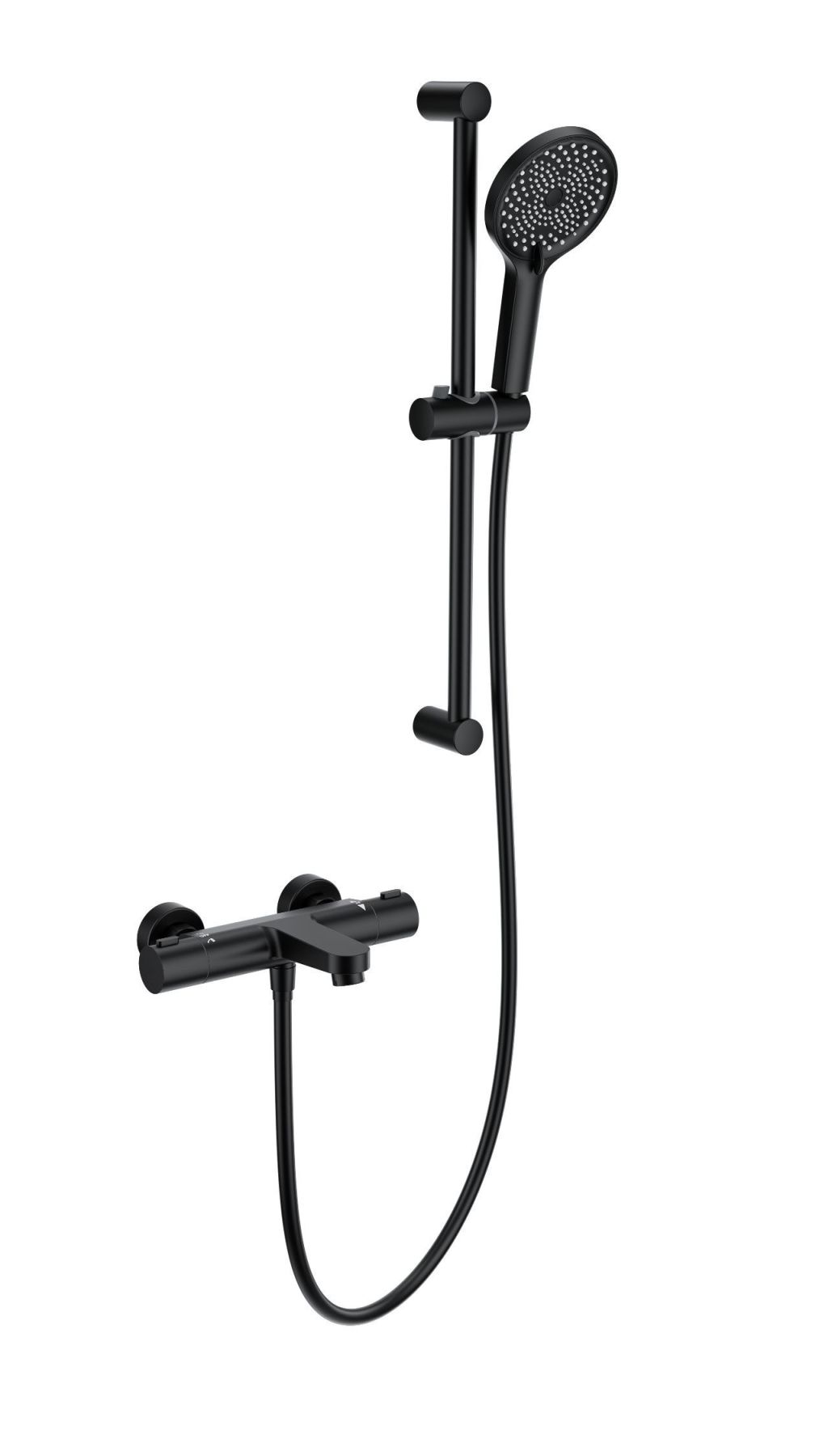 Смеситель для ванны с душевым гарнитуром и термостатом WONZON & WOGHAND, Черный матовый (WW-C2018-A-MB)