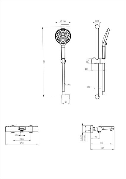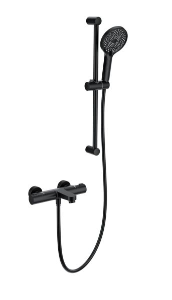 Смеситель для ванны с душевым гарнитуром Wonzon & Woghand WW-C2018-A-MB с термостатом чёрный матовый