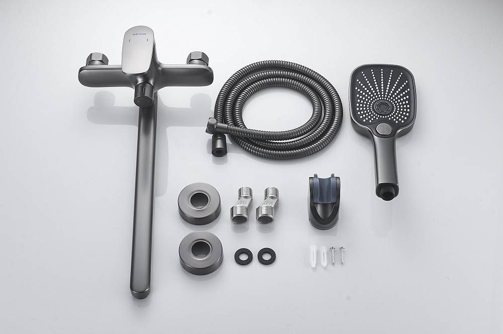 Смеситель для ванны Shevanik S8522T, оружейная сталь.Душевой гарнитур в комплекте: да.Управление: рычажное.Монтаж: настенный.