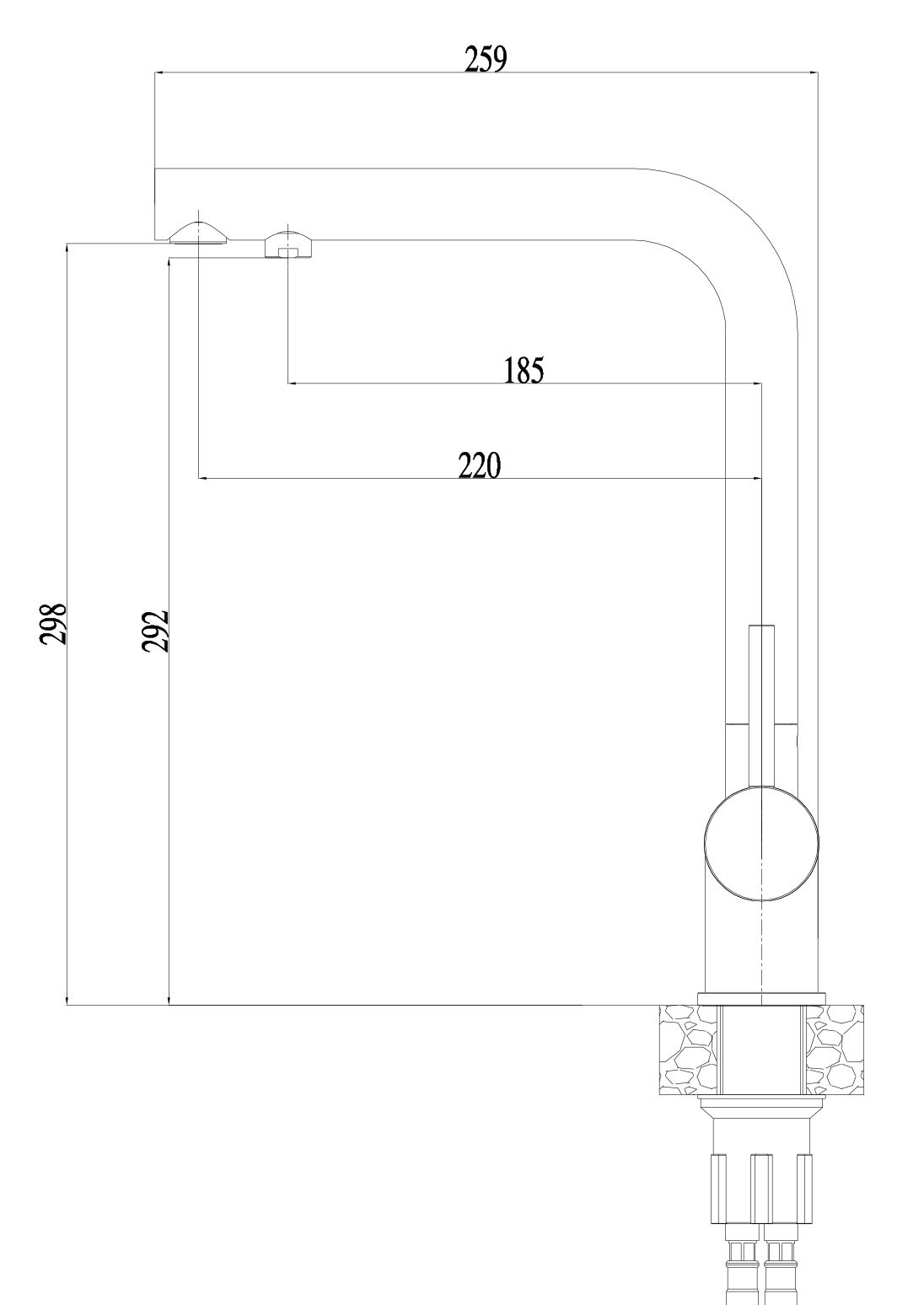 • Высота смесителя: