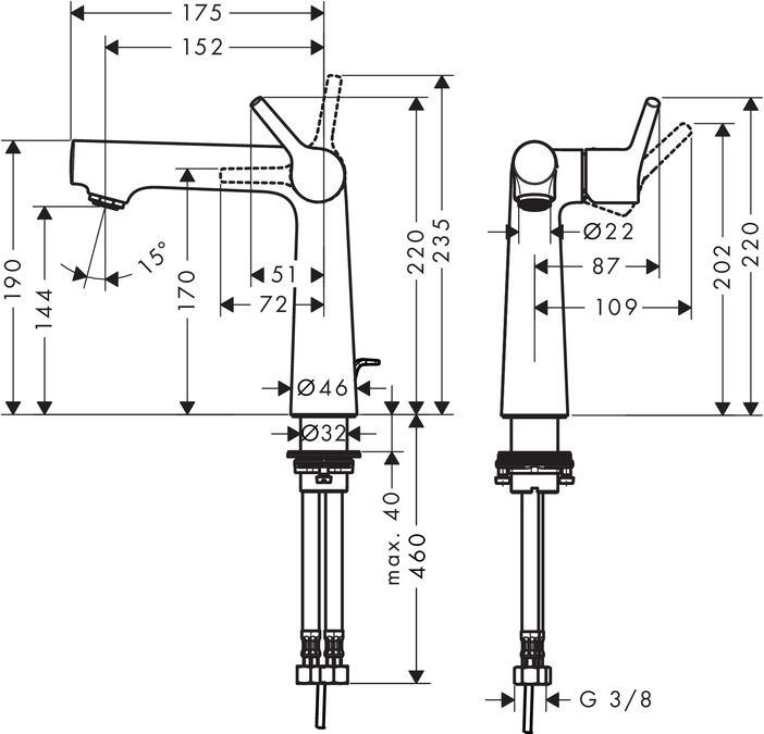 Смеситель для раковины 140, однорычажный, со сливным гарнитуром Hansgrohe Тalis S New 72113000 по выгодной ценеХарактеристики продукта:-ComfortZone 140