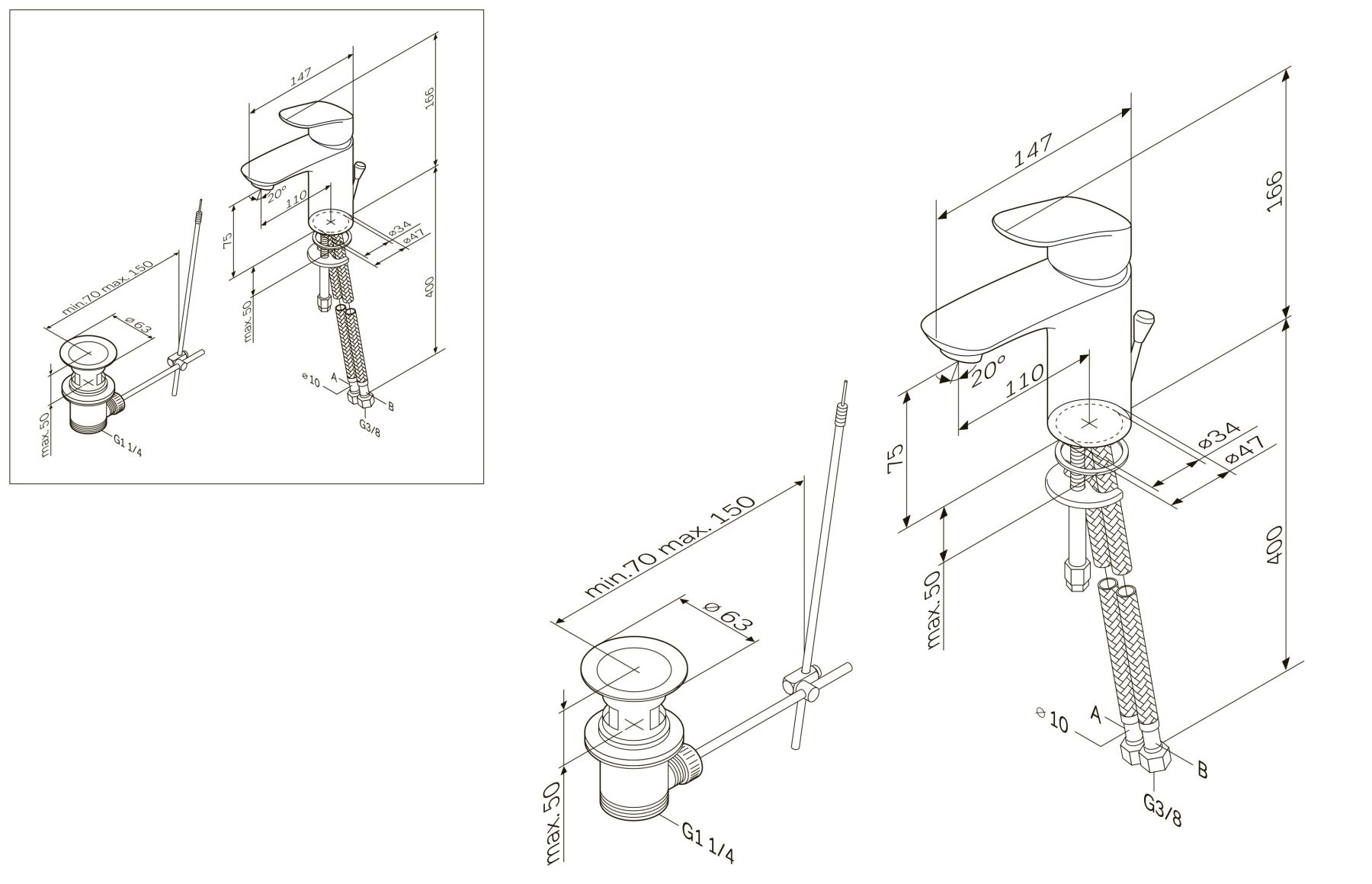 • Высота смесителя:
