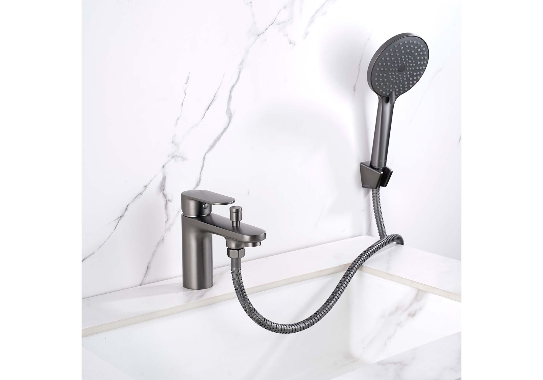 Смеситель на борт ванны Aquatek Ника AQ1844BGM оружейная стальСмеситель