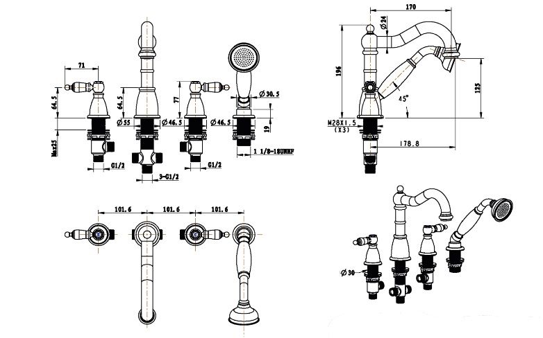 Смеситель Boheme Oro 395 на борт ванны превосходно подойдет в вашу ванную комнату и дополнит интерьер. Смеситель Boheme Oro несомненно подойдет почти на любую ванну. Благодаря удобной конструкции однорычажных моделей, процесс регулировки температуры воды и интенсивность струи можно произвести одной рукой без особых усилий.Латунь использованная в конструкции смесителя Boheme Oro 395 соответствует всем необходимым стандартам качества и является абсолютно безвредной для здоровья. Излив смесителя Boheme 395 длиной 17 см и высотой 12.5 см обеспечит идеальное и комфортное использовании при принятии водных процедур. Излив Boheme Oro так же оснащен функцией вращения, что значительно упростит использование смесителя. Конструкция модели Boheme Oro позволяет роскошно установить смеситель на борт ванны. Смеситель для ванны Boheme 395 выполнен в стиле ретро, что восхитительно прослеживается в его форме. Родина бренда Boheme – Италия, все смесители произведены с высокой точностью и грамотностью технологического процесса. Смеситель Boheme Oro 395 на борт ванны это незаменимый элемент для создания уюта и комфорта в ванной.