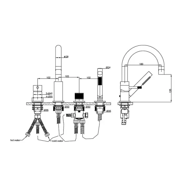Смеситель врезной Boheme Uno 460, на борт ванны, Ширина, см: 36 Длина, см: 27,8 Глубина, см:... Подробнее