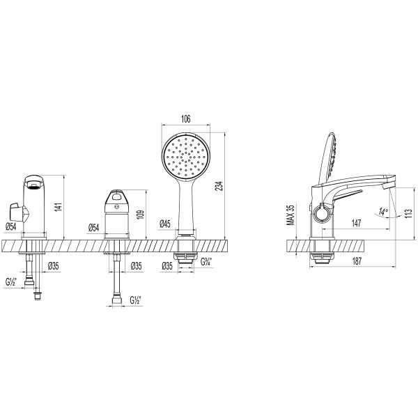 Смеситель на борт ванны Lemark Luna LM4147C хром купить