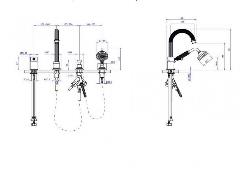 Оснащение: душевой шланг, душевая лейка, крепления, аэратор, гибкая подводка, дивертор