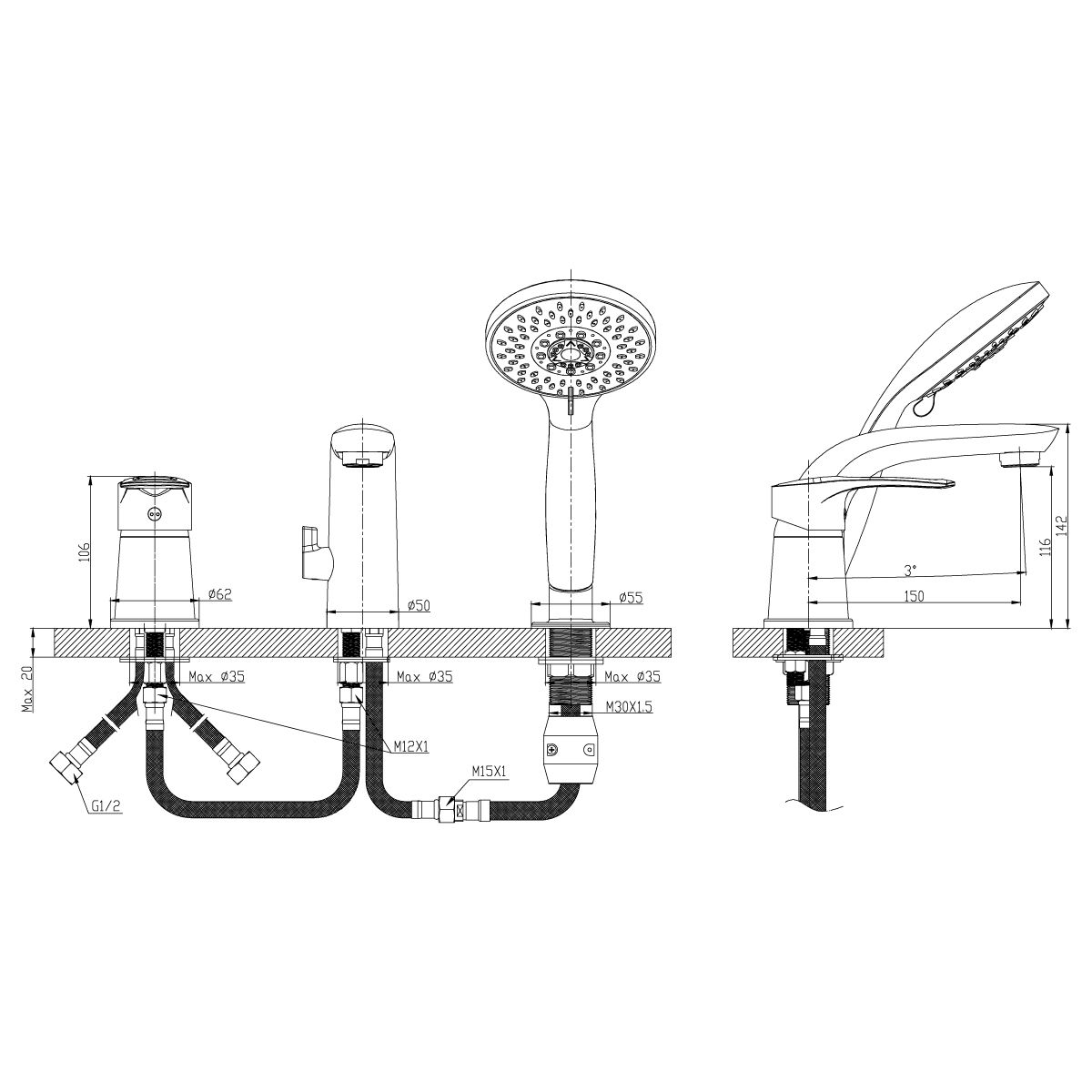 Смеситель на борт ванны Rossinka T40-39 Хром купить