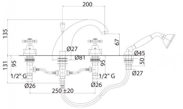 Оснащение: душевой шланг, душевая лейка, крепления, аэратор