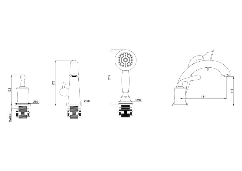 Смеситель на борт ванны WONZON & WOGHAND STEAM, Черный матовый (WW-88659008-MB) Подробнее