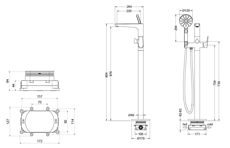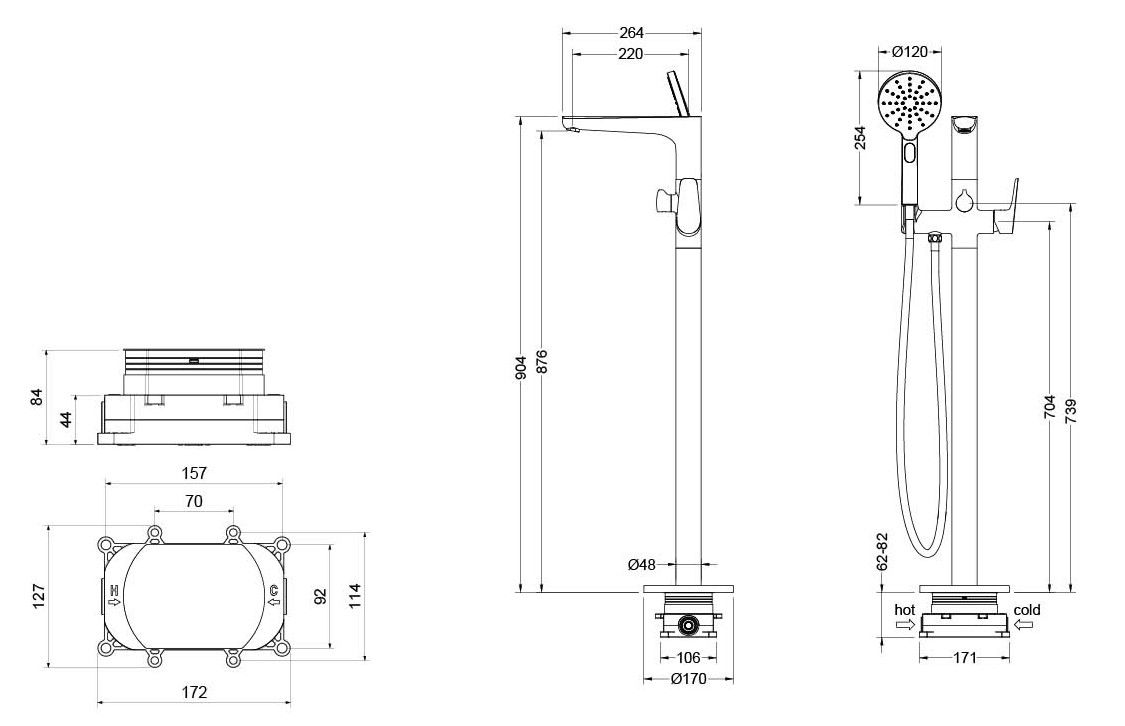 Смеситель напольный для ванны Aquatek Бетта AQ1145BGM шлифованный чёрный хром