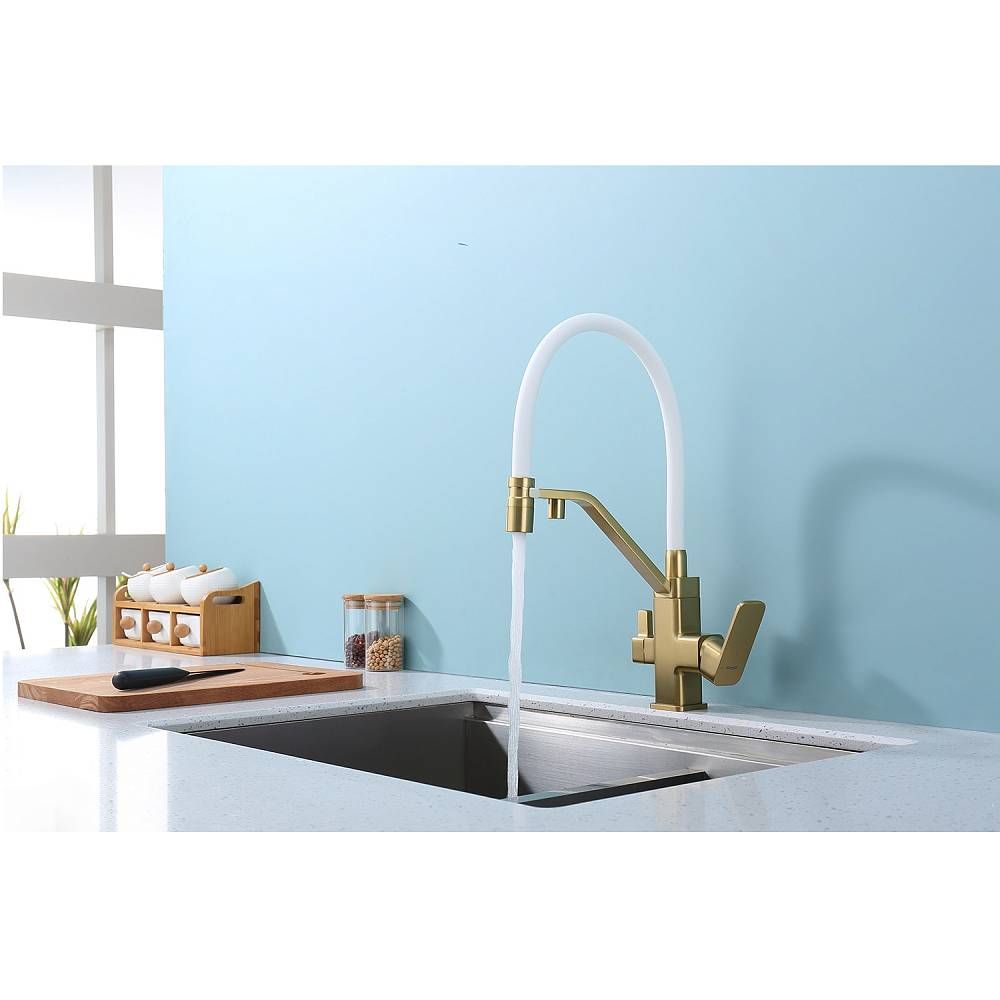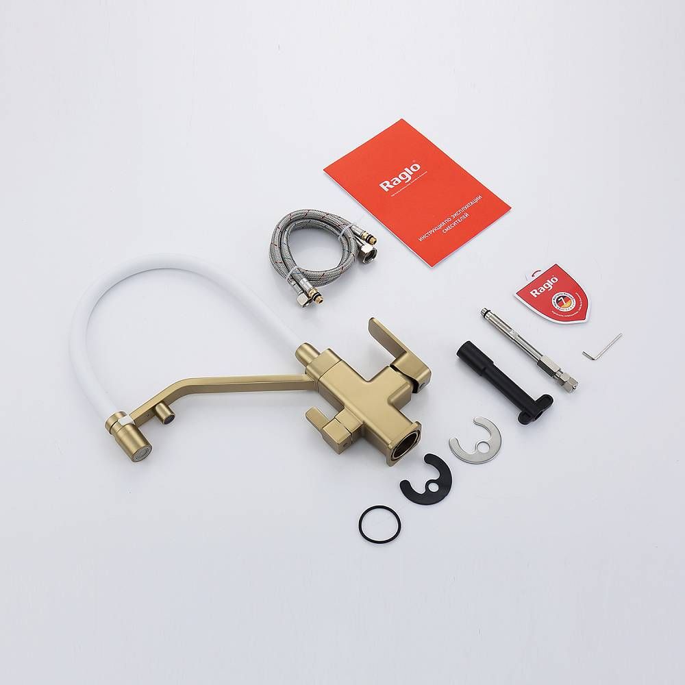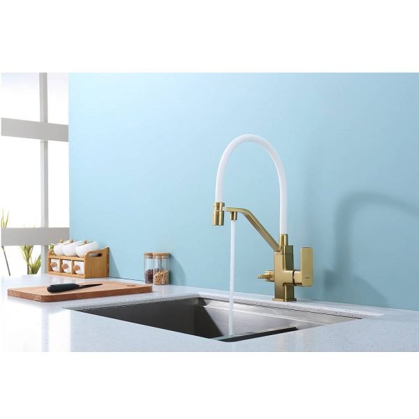 Смеситель Raglo R85.62.03 для кухни с подключением фильтра золотой сатин купить