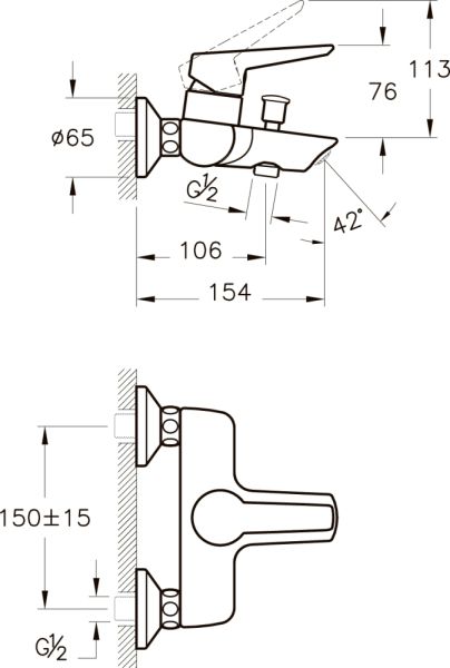 Смеситель VitrA Solid S A42444EXP для ванны и душа купить