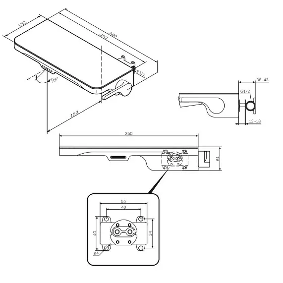 Размер смесителя (Ш/Г/В): 380x152x61 мм. Материал - ABS, PPA, латунь, Zamak. Цвет - хром.
