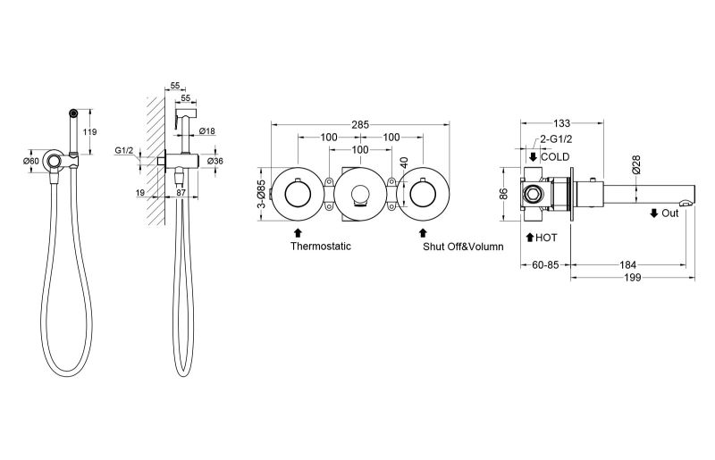 Встраиваемый смеситель с функцией подключения гигиенического душа Timo Saona 2383 предназначен для монтажа в твердой или полой стене. Встроенныи? блок может быть установлен с левым или правым подключением гигиенического душа. Гигиенический душ можно установить автономно на любом расстоянии от смесителя. Для использования гигиенического душа включать смеситель не требуется. Подача воды на гигиеническую лейку осуществляется нажатием кнопки, расположенной на корпусе держателя лейки. В смесителе установлен термостатический картридж для поддержания стабильной температуры воды в смесителе и гигиеническом душе. Подача воды и увеличение напора в смесителе осуществляется поворотом ручки расположенной справа (при установке душа слева). Сложностей монтажа не возникает при установке смесителя опытным сантехником. Основные преимущества встроенного смесителя: коммуникации, крепления и механизмы спрятаны в стену и видны только декоративные элементы, установить встроенный смеситель можно в любом месте. Внимательно изучите инструкцию по монтажу и эксплуатации.
