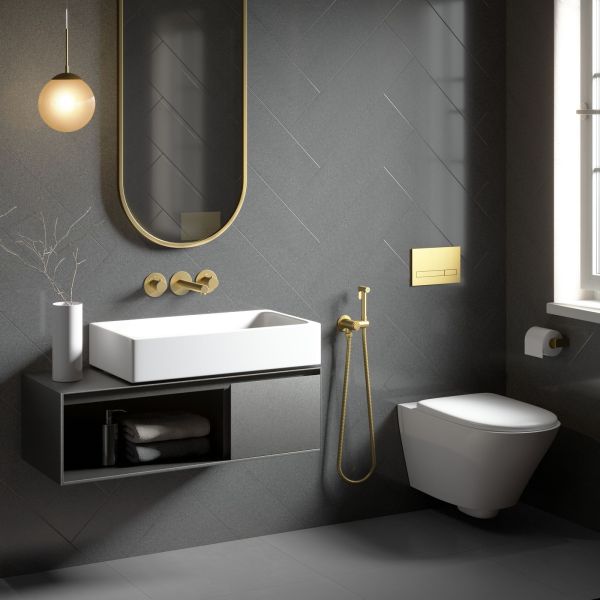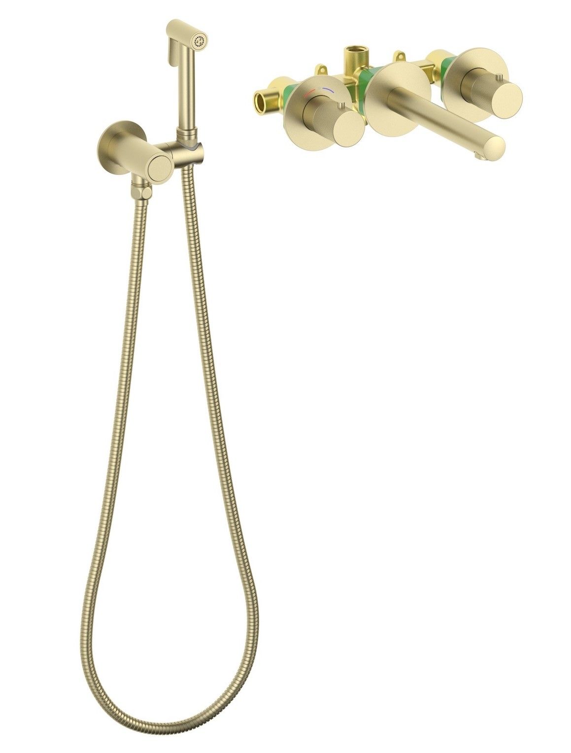 Смеситель встраиваемый для раковины Timo Saona 2383/17SM с гигиеническим душем золото матовое купить