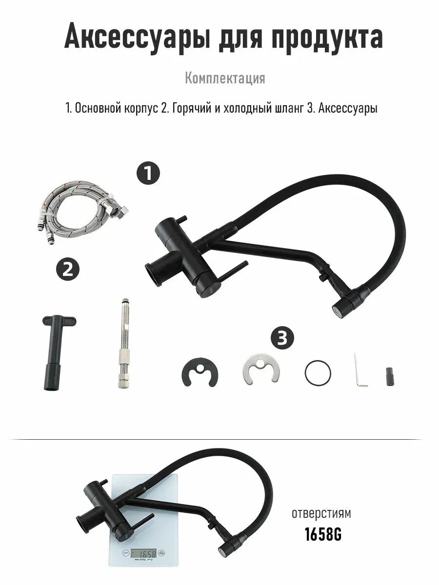 Смесители для кухни Gappo G4398-86 под фильтр с гибким изливом чёрный