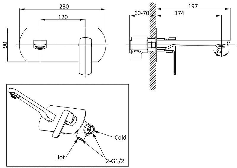 встраиваемый в стенуТип смесителя: