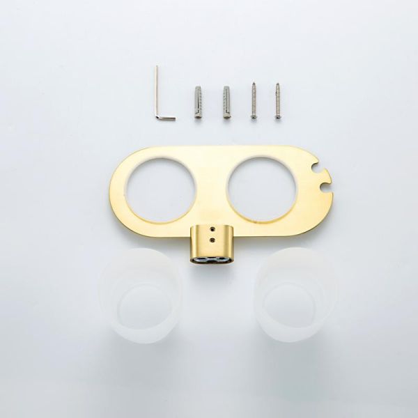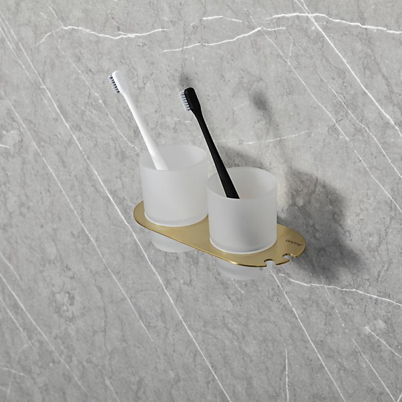 Держатель и два стакана выполнены в форме овала, что придает им современный и стильный вид. Цвет сатинового золота добавляет изделию изысканности и роскоши.