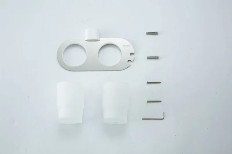 Держатель + 2 стакана для ванной комнаты Gappo G30908-8 - это стильный и функциональный аксессуар для вашей ванной комнаты. Изготовленный из металла и стекла, он сочетает в себе прочность и элегантность, а белый и хромированный цвета придают ему современный и стильный вид.