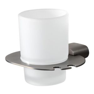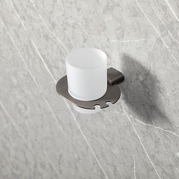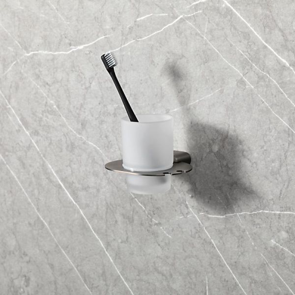 Стакан имеет овальную форму и предназначен для хранения зубных щеток. В комплекте с держателем, который крепится на саморезы, что обеспечивает надежное крепление и устойчивость конструкции.