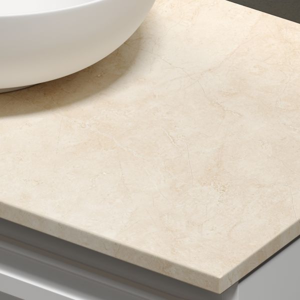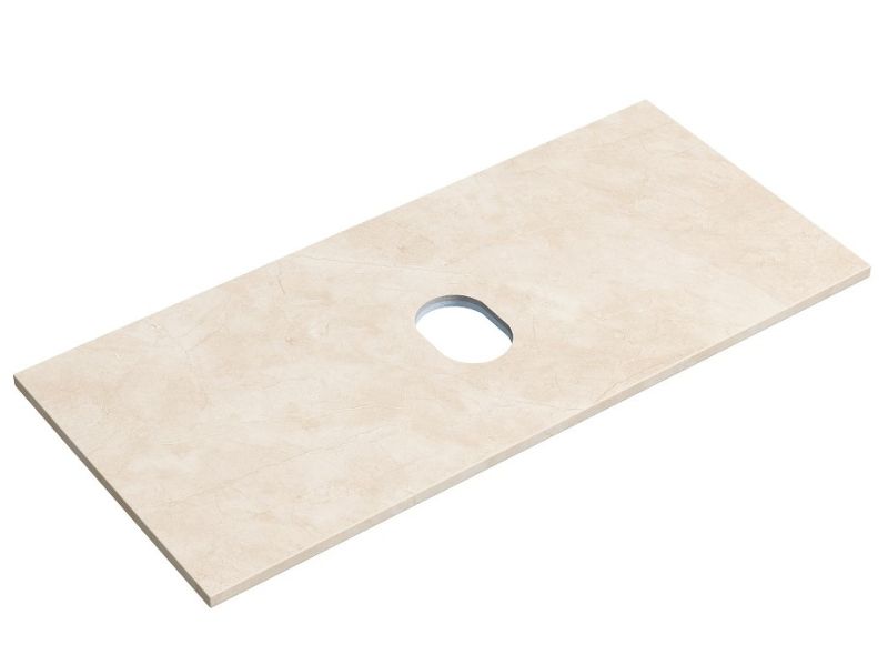 Столешница для ванной комнаты из керамогранита, для установки на подвесную тумбу. C готовым отверстием для установки накладной раковины. Без заранее просверленного отверстия под смеситель.