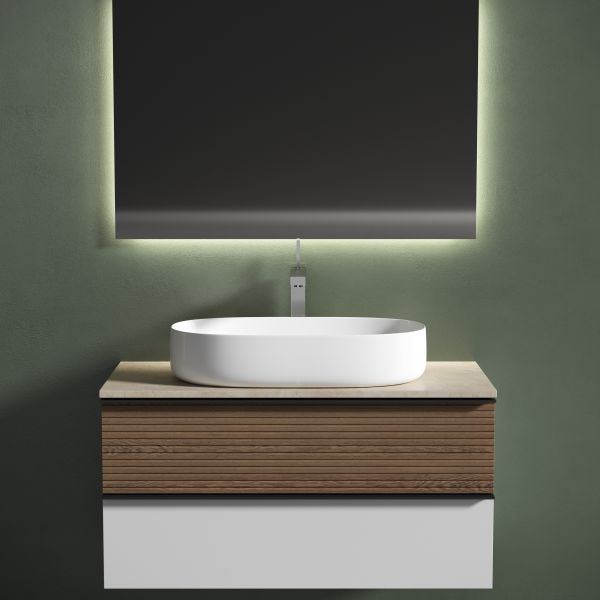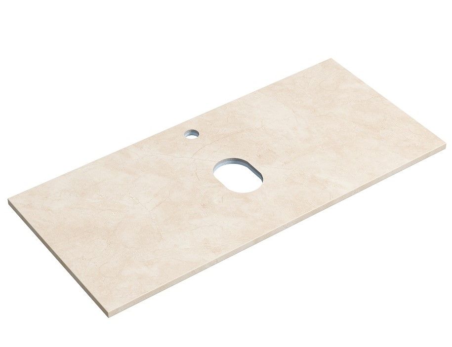 Столешница для ванной комнаты из керамогранита, для установки на подвесную тумбу. C готовым отверстием для установки накладной раковины. С заранее просверленным отверстием под смеситель.