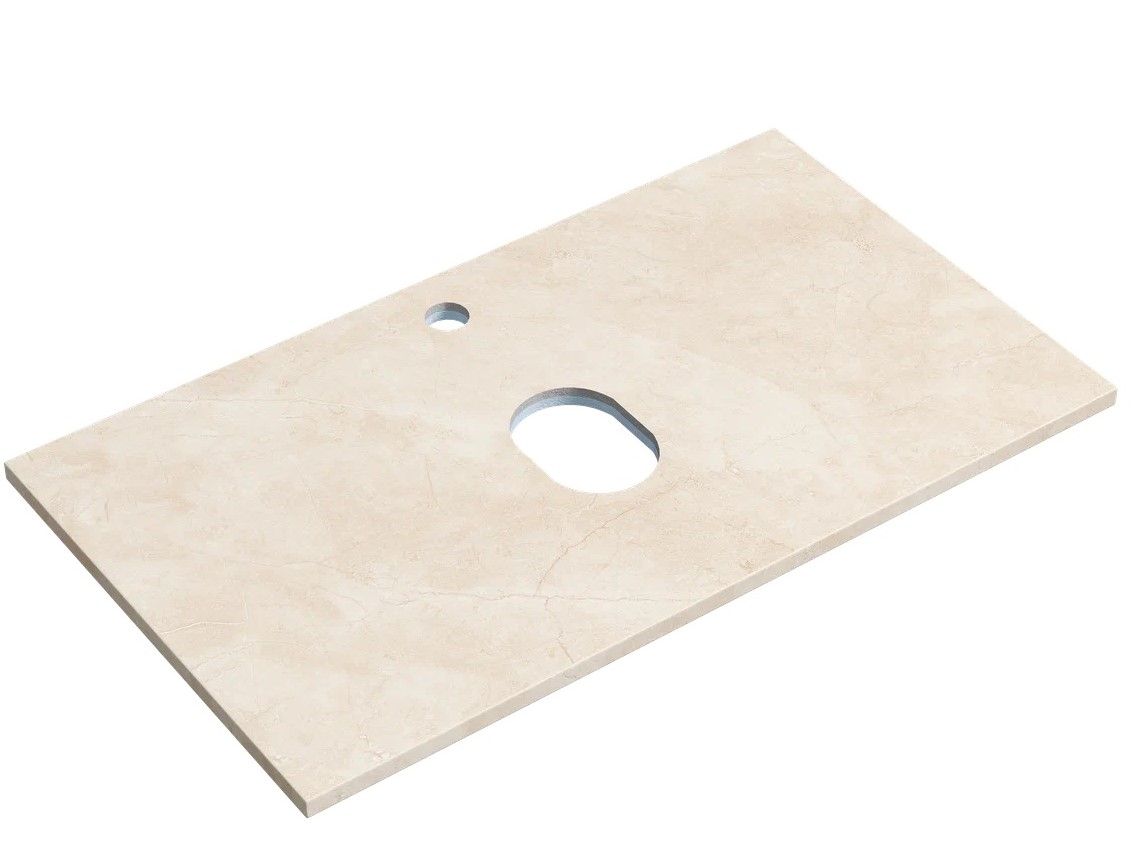 Столешница для ванной комнаты из керамогранита, для установки на подвесную тумбу. C готовым отверстием для установки накладной раковины. С заранее просверленным отверстием под смеситель.