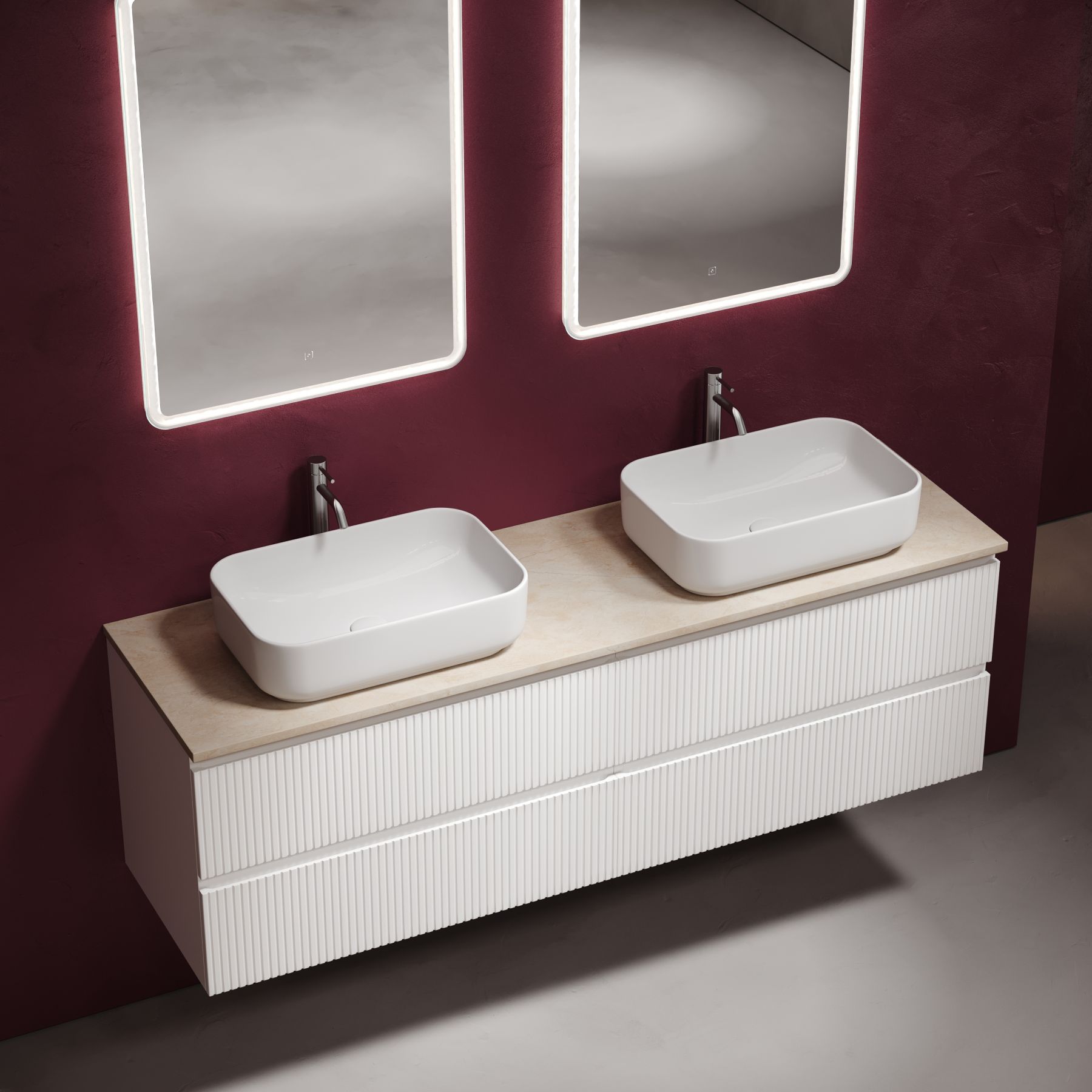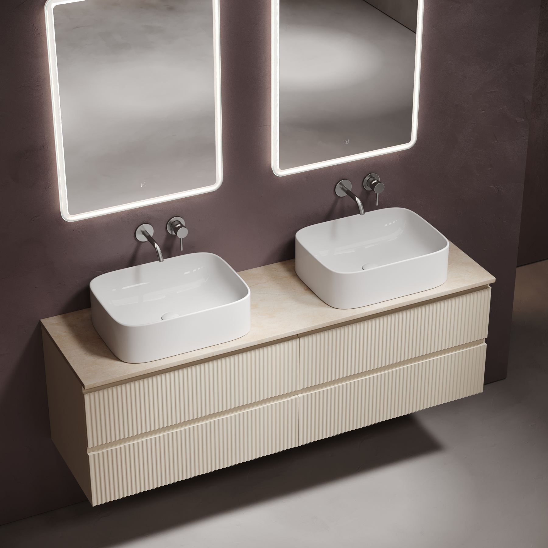 • Возможность комплектации с двумя подвесными тумбами в размере 800 мм из коллекций: FOLK, VERY, SNOB R, SNOB T, MARMI 1.0, MARMI 2.0.