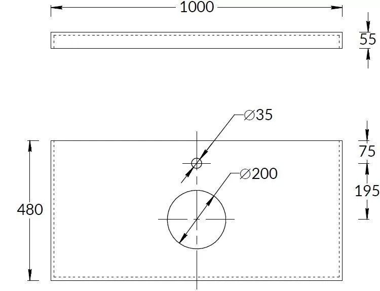 Столешница из керамического гранита с эффектом камня Роверелла с отверстием под смеситель. Отверстия для раковины и смесителя располагаются в центре. Смеситель устанавливается в столешницу (используйте смесители с подходящим типом установки)