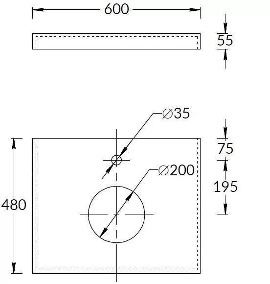 Столешница из керамического гранита с эффектом камня Роверелла с отверстием под смеситель. Отверстия для раковины и смесителя располагаются в центре. Смеситель устанавливается в столешницу (используйте смесители с подходящим типом установки)