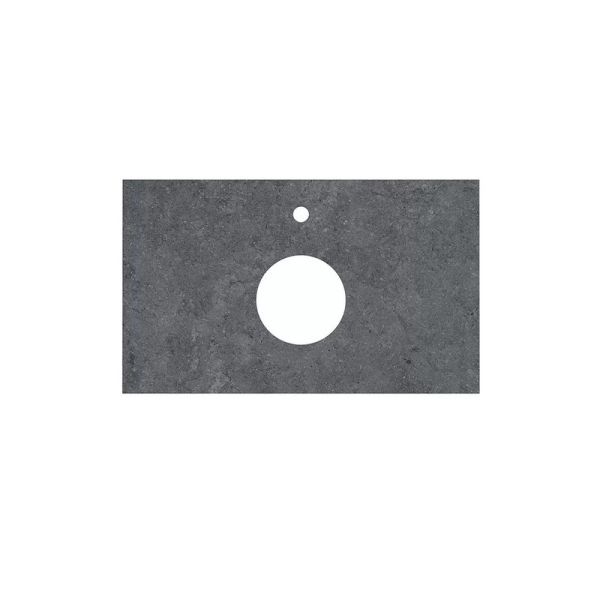 Столешница из керамического гранита с эффектом камня Роверелла с отверстием под смеситель. Отверстия для раковины и смесителя располагаются в центре. Смеситель устанавливается в столешницу (используйте смесители с подходящим типом установки)