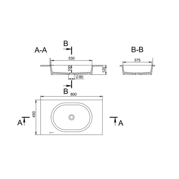 Столешница с раковиной Holbi Ariel 80см белый матовый 1.05.004.11.1