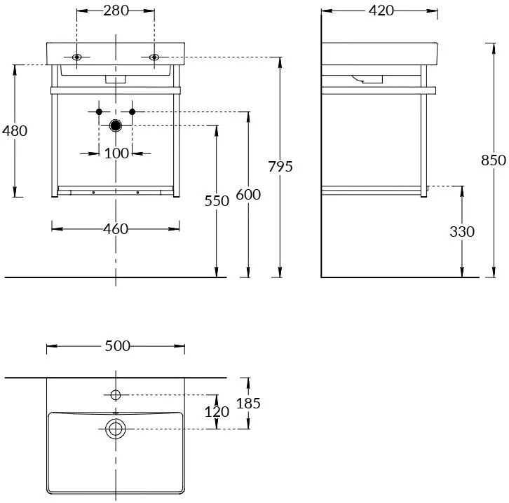 Стильная металлическая структура, окрашенная в чёрный матовый цвет, — интересная альтернатива привычной тумбе. Предназначена для установки раковины PRO шириной 50 см. Белая матовая полка из окрашенного ЛДСП заказывается отдельно.